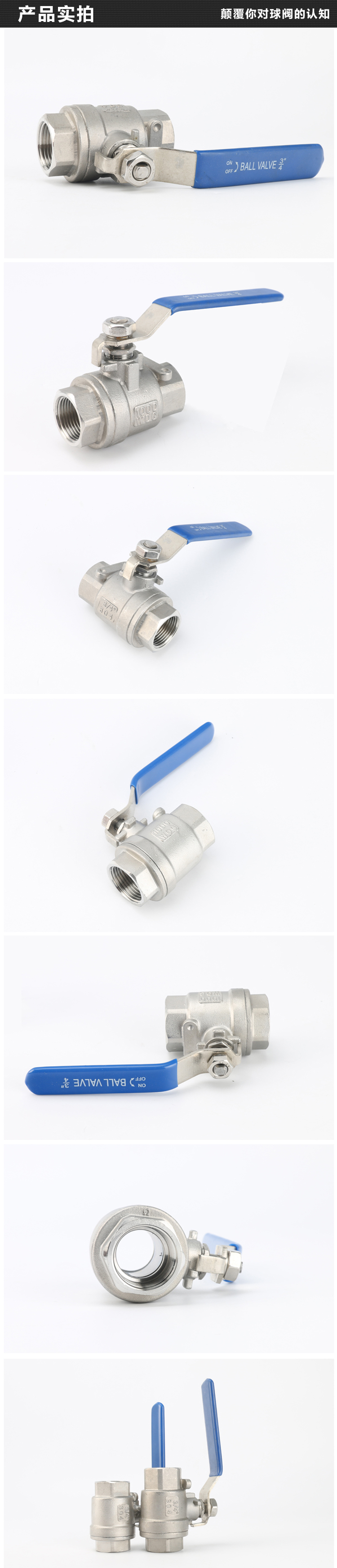 二片式球阀阀体铸造采用先进工艺,结构合理、造型美观。阀座采用弹性密封结构,密封可靠,启闭轻松。 阀杆采用有倒密封的下装式结构,阀腔异常升压时,阀杆不会被冲出。采用二片式分体式结构设计,二片式球阀适用于 PN1.0~12.5MPa,工作温度 -29~180℃(密封圈为增强聚四氟乙烯)或-29~300℃(密封圈为对位聚苯)的各种管路上,用于截断或接通管路中的介质,2000WOG内螺纹球阀选用不同的材质,可分别适用于水、蒸汽、油品、硝酸、醋酸等多种介质。