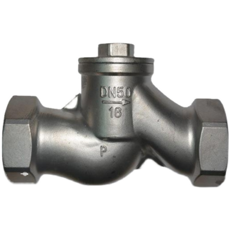 不锈钢升降式止回阀的主要优点是结构简单,由于锥形阀瓣是唯一的运动部件,阀门结实耐用,几乎不需要维护,而且由于是金属阀座,磨损很少。升降式止回阀的局限性是必须安装在水平管道上。采用金属对金属密封副的升降式止回阀,允许有少量泄漏,仅适用于对流体倒流密封要求不是十分严格的场合,一般仅用于水系统,因此通常用于阻止蒸汽疏水阀的冷凝水倒流,也用于冷凝水管道离心泵的出口。不锈钢升降式止回阀的阀瓣是自动工作的,一般是在阀门的进出口之间有个圆锥形阀瓣压在金属阀座上。阀瓣上可以加设弹簧以预载。流体正向流动时,在流体压力作用下,锥形阀瓣脱开阔座,阀门开启。倒流时,阀瓣在自重、弹簧作用力(如果设有弹簧预载)、流体回流压力的共同作用下,回落到阀座上,阀门关闭。